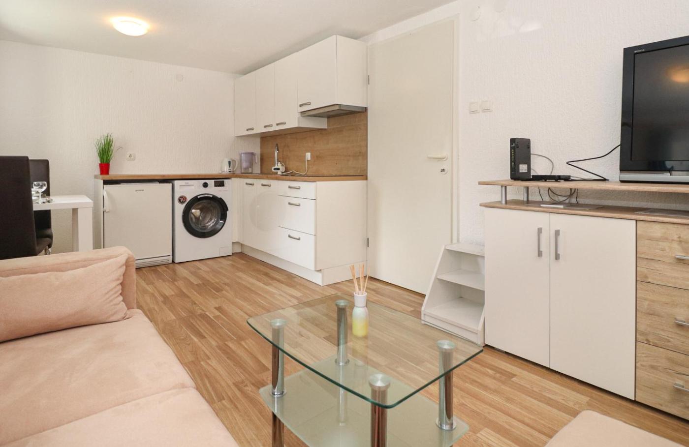 One-Bedroom Apartment. Boasting a private entrance, this apartment features 1 living room, 1 separate bedroom and 1 bathroom with a bath or a shower and a hairdryer. In the kitchen, guests will find a stovetop, a refrigerator, a dishwasher and kitchenware. The apartment features a flat-screen TV with cable channels, a washing machine, a tea and coffee maker, a seating area as well as a quiet street view. The unit has 2 beds.