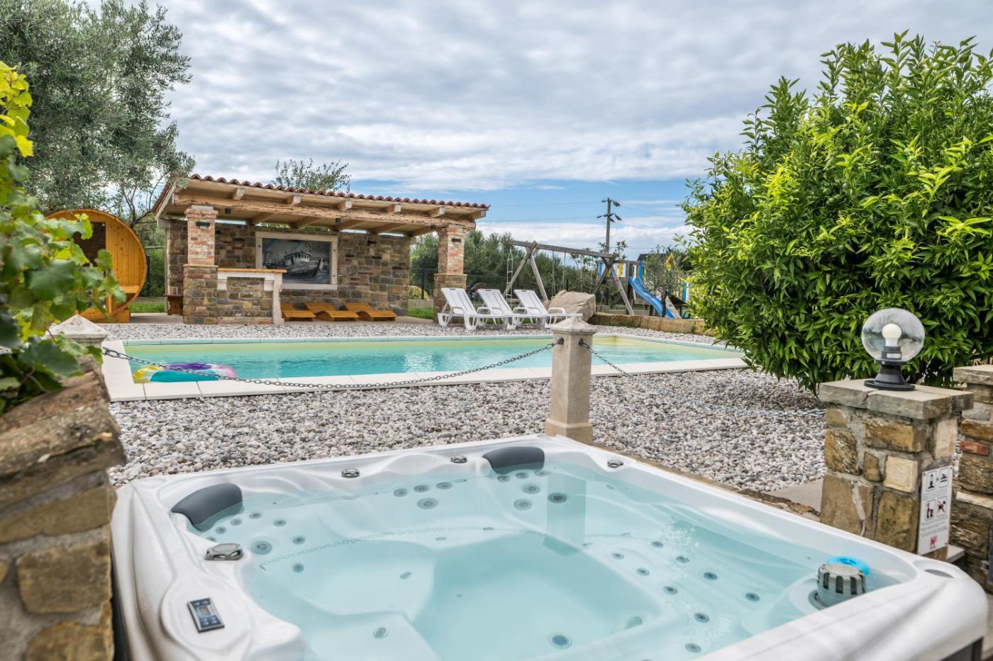 Villa. This luxurious villa provides a private pool, a hot tub and a sauna. Boasting a private entrance, this air-conditioned villa comes with 1 living room, 5 separate bedrooms and 3 bathrooms with a bath and a shower. Guests will find a stovetop, a refrigerator, a dishwasher and kitchenware in the well-fitted kitchen. The villa also includes a barbecue. The spacious villa features a washing machine, soundproof walls, a tea and coffee maker as well as a terrace with sea views. The unit has 7 beds.