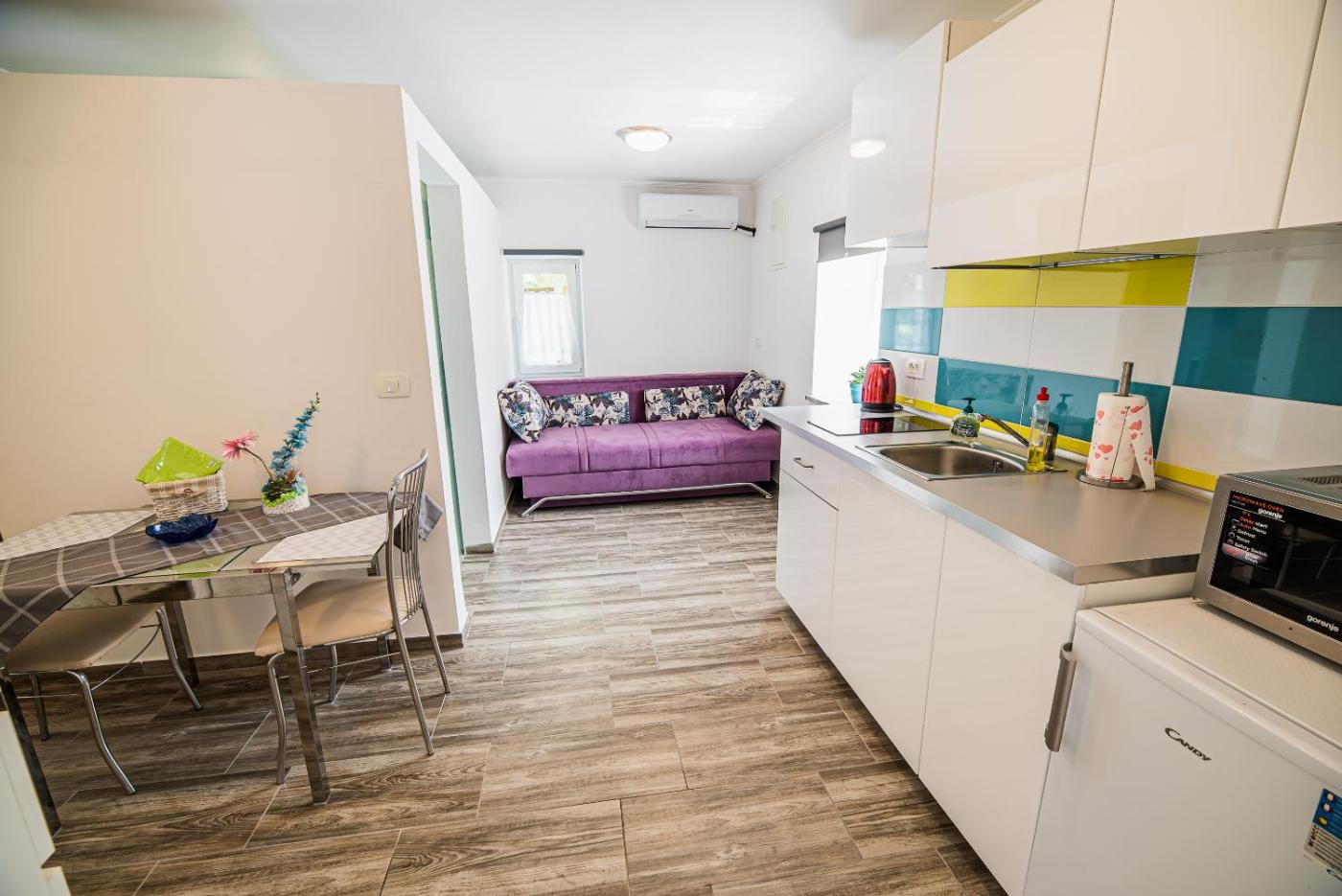 Studio Apartment. Featuring a private entrance, this air-conditioned apartment consists of a kitchenette, 1 bedroom and 1 bathroom with a walk-in shower and a hairdryer. Guests can make meals in the kitchenette that is equipped with a stovetop, a refrigerator, kitchenware and a microwave. Boasting a terrace with mountain views, this apartment also provides a tea and coffee maker and a flat-screen TV with cable channels. The unit offers 1 bed.
