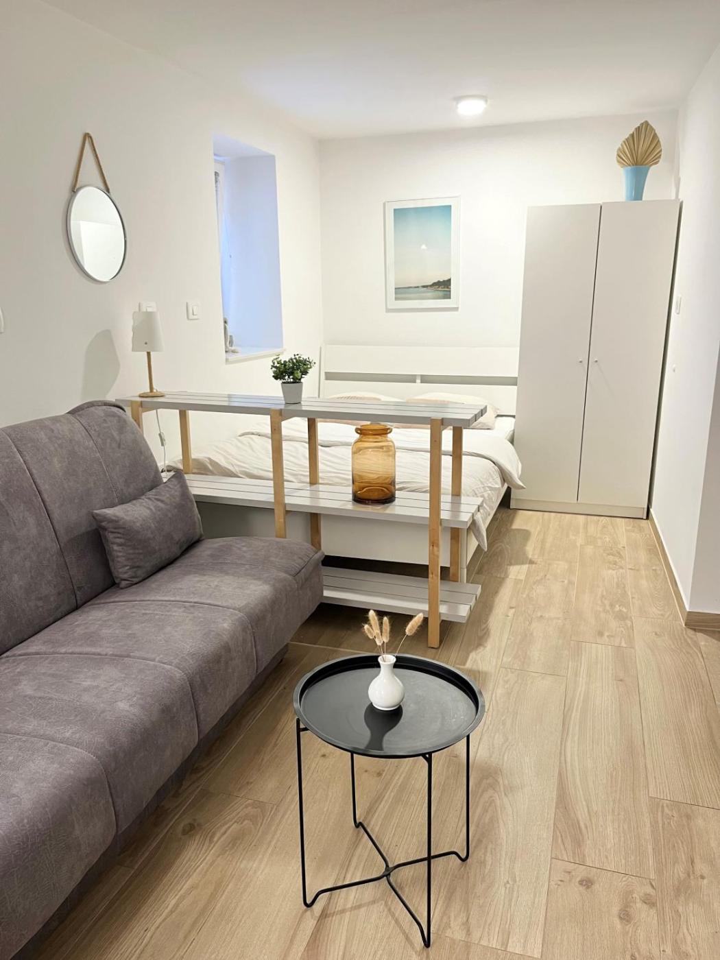 One-Bedroom Apartment. Featuring a private entrance, this air-conditioned apartment comprises 1 living room, 1 separate bedroom and 1 bathroom with a walk-in shower. The well-equipped kitchen features a stovetop, a refrigerator and kitchenware. Boasting a balcony with garden views, this apartment also provides a seating area and a flat-screen TV with cable channels. The unit offers 2 beds.