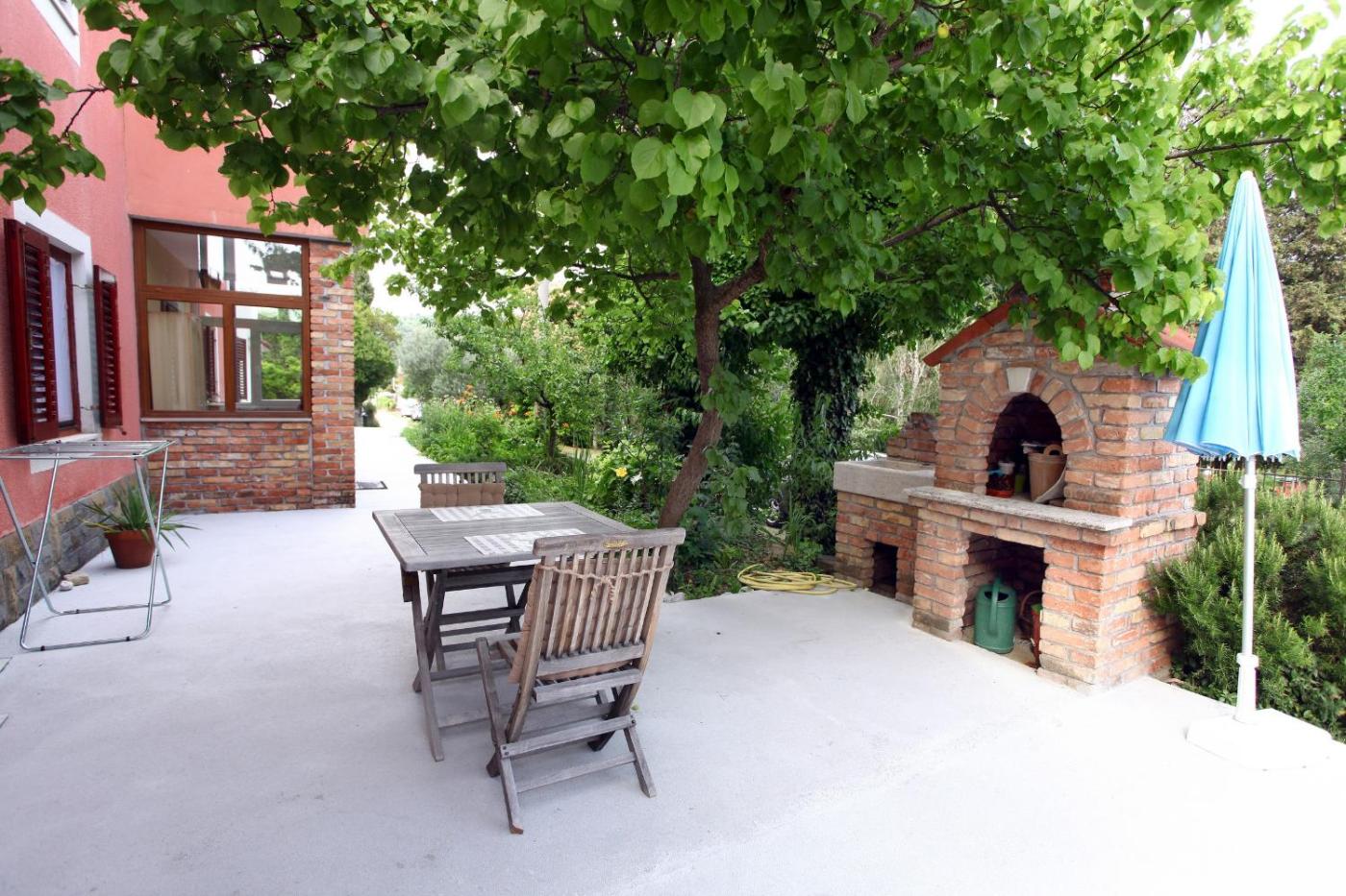 Apartment - Ground Floor. Featuring a private entrance, this air-conditioned apartment consists of a kitchen, 1 bedroom and 1 bathroom with a bidet and a hairdryer. Guests will find a stovetop, a refrigerator, kitchenware and an oven in the fully equipped kitchen. The apartment also offers a barbecue. Boasting a terrace with garden views, this apartment also provides a washing machine and a flat-screen TV with cable channels. The unit offers 2 beds.