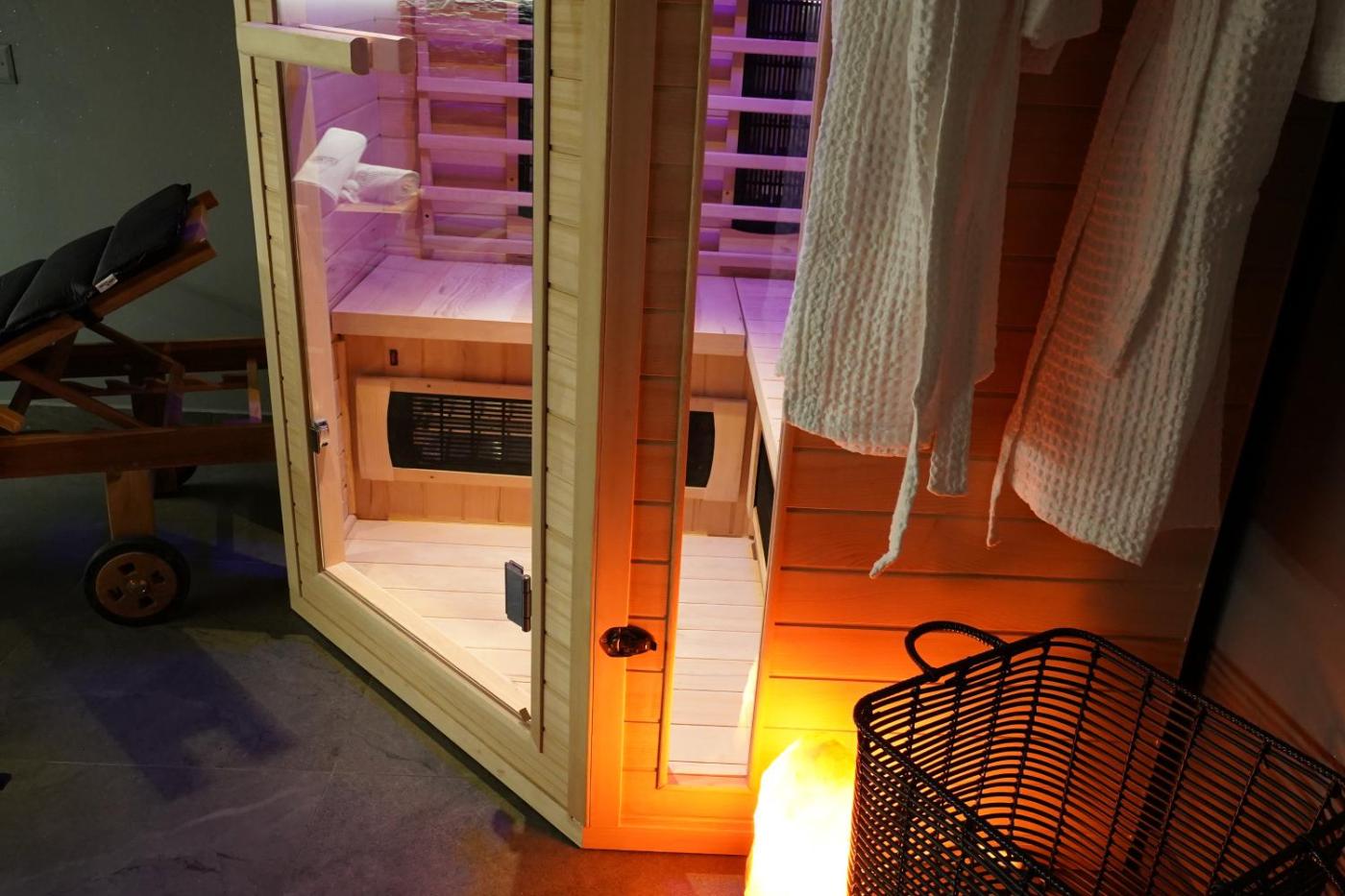 Two-Bedroom Deluxe Apartment. Guests will have a special experience as this apartment provides a hot tub and a sauna. Featuring a private entrance, this air-conditioned apartment is comprised of 1 living room, 2 separate bedrooms and 1 bathroom with a walk-in shower and a bath. In the kitchen, guests will find a stovetop, a refrigerator, a dishwasher and kitchenware. The spacious apartment offers a flat-screen TV with satellite channels, a coffee machine, a seating area, a dining area as well as garden views. The unit offers 3 beds.