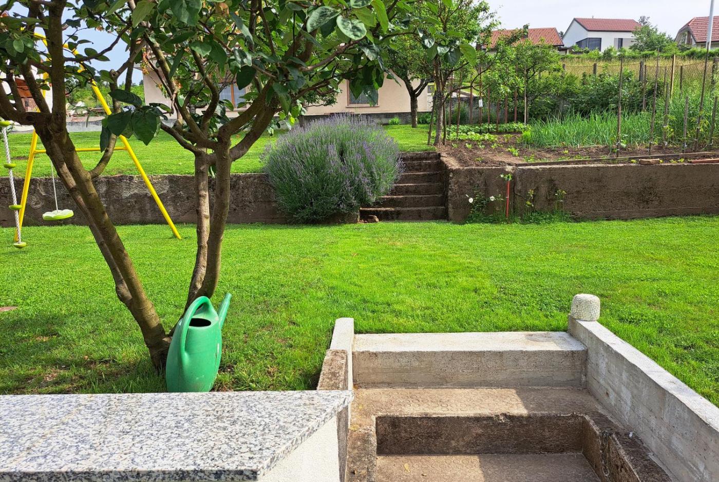 The apartment is fitted with 1 bedroom, 1 bathroom, bed linen, towels, a flat-screen TV with cable channels, a dining area, a fully equipped kitchen, and a terrace with garden views. The property has an outdoor dining area.