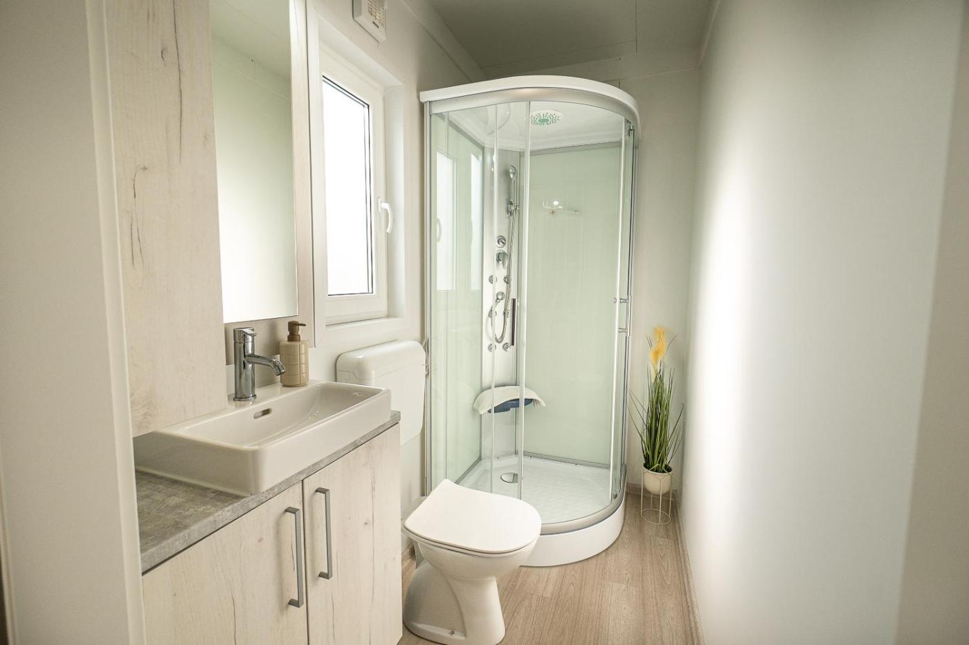 Mobile Home. Boasting a private entrance, this air-conditioned mobile home features a kitchen, 2 bedrooms and 1 bathroom with a shower and slippers. The mobile homes kitchen, which has a stovetop and kitchenware, is available for cooking and storing food. Featuring a terrace with garden views, this mobile home also features a tea and coffee maker and a flat-screen TV. The unit has 3 beds.